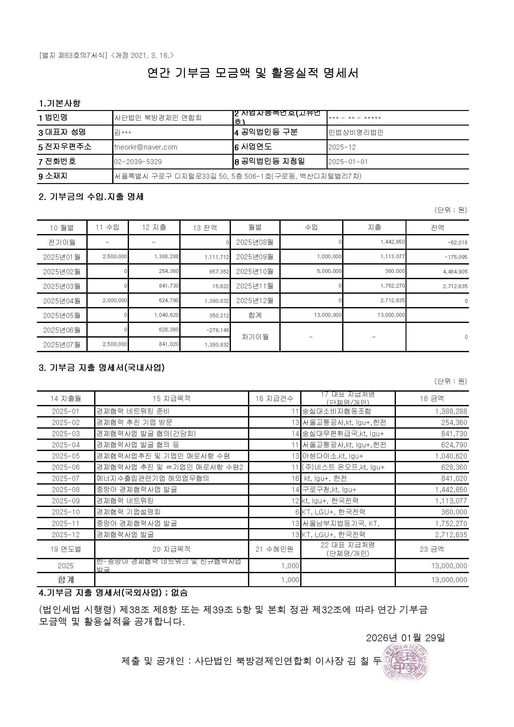 4. 기부금(품) 모금액 및 활용실적(2025년)http://북방경제인연합회